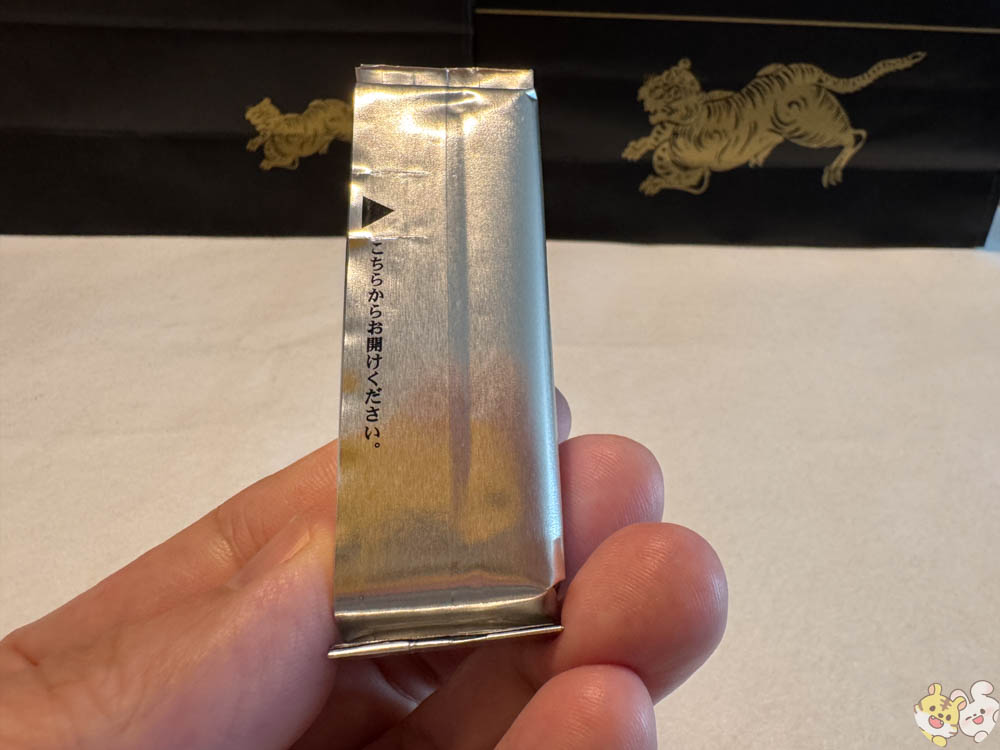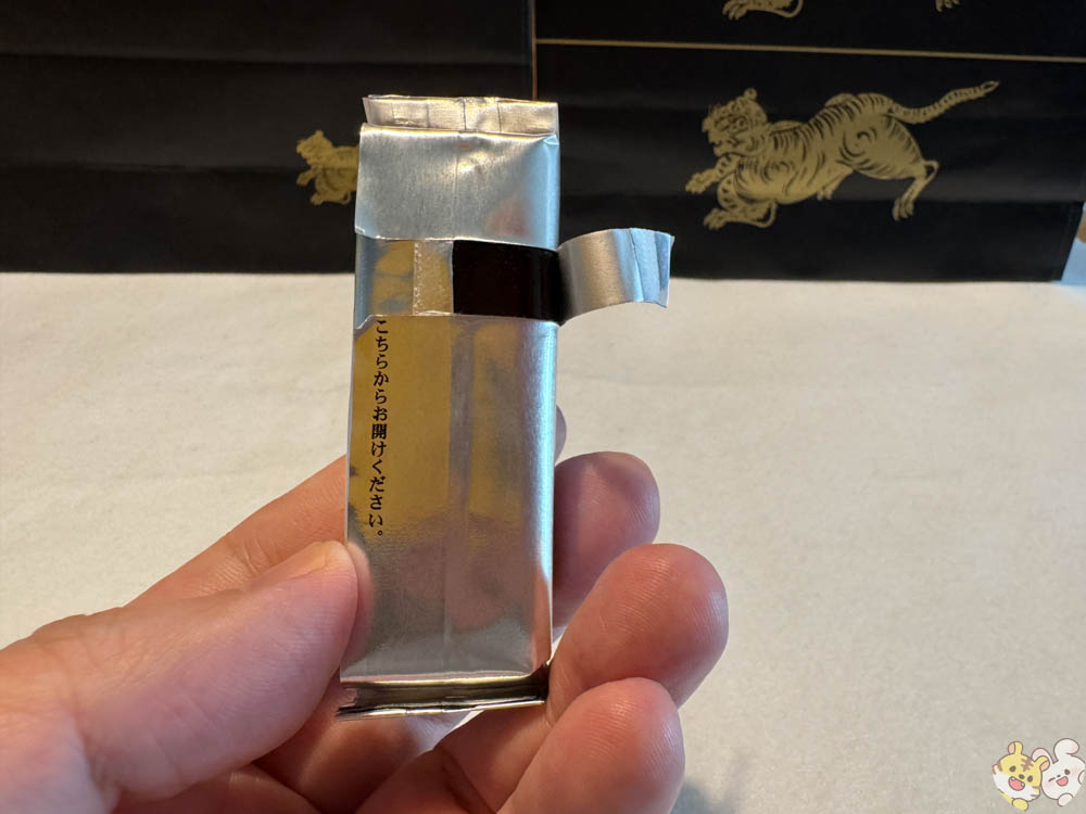 銀色の中袋が、開けやすい作りになっており、手を汚さずに羊羹を食べることができます。そのため、デスクワークの合間に気軽に食べることができる羊羹です。